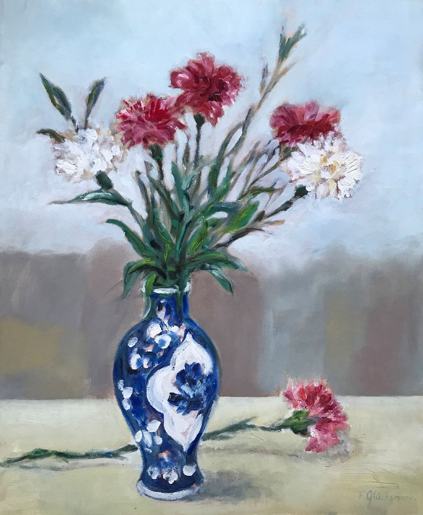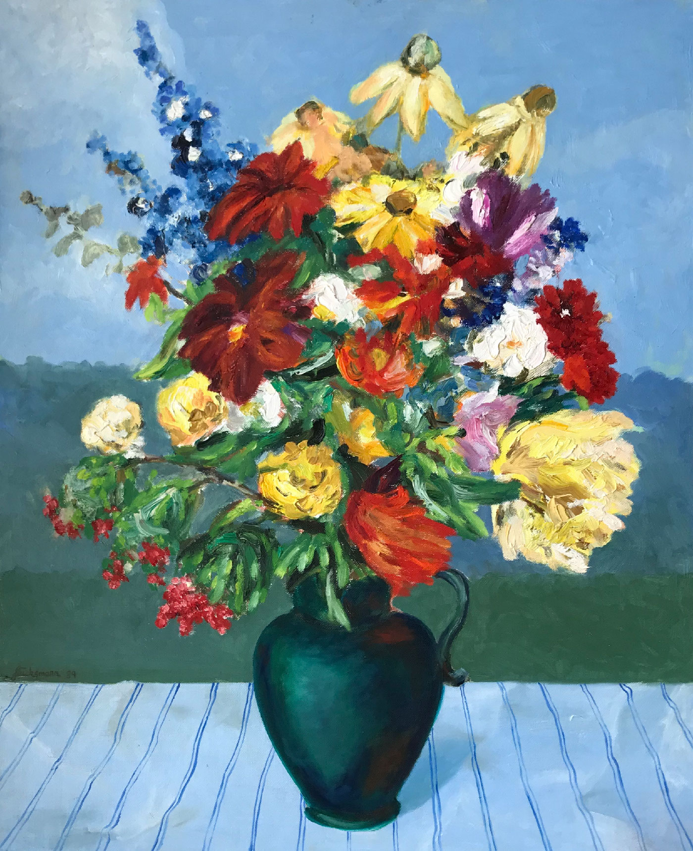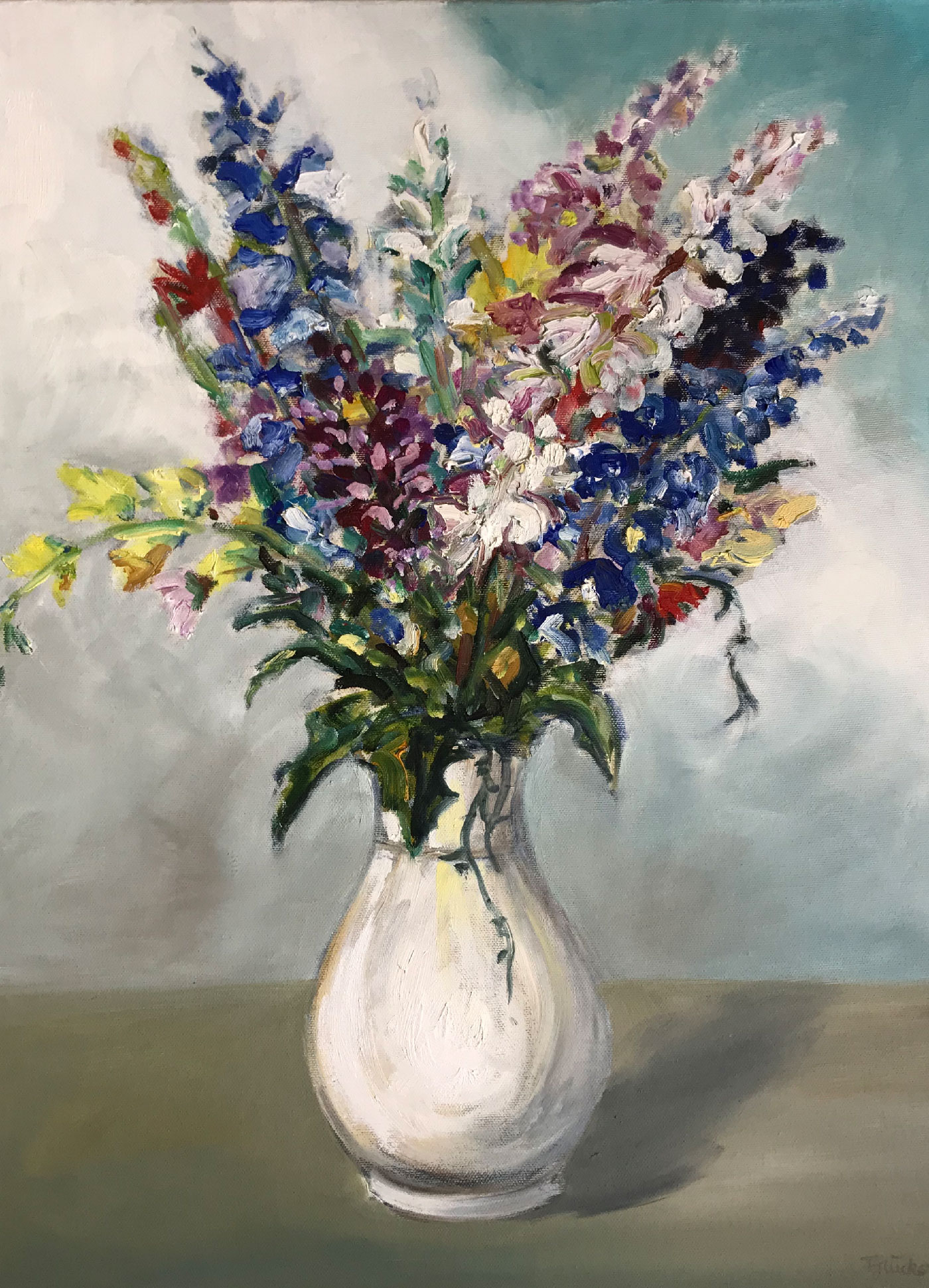 Blumen in Blauer Vase, 61x46cm, 1988